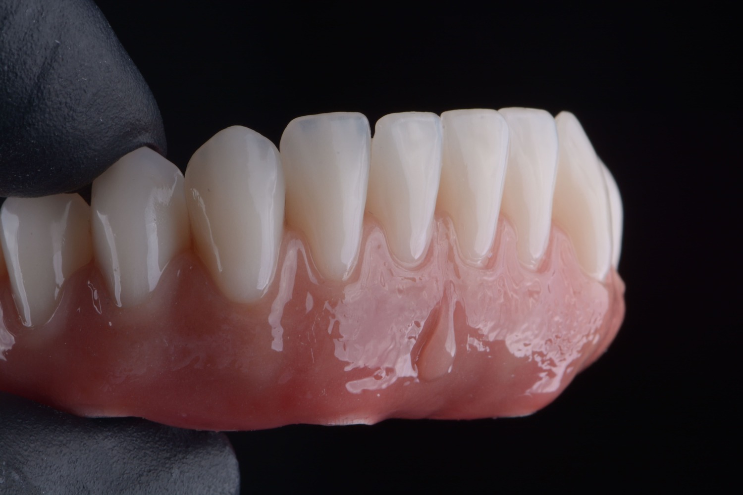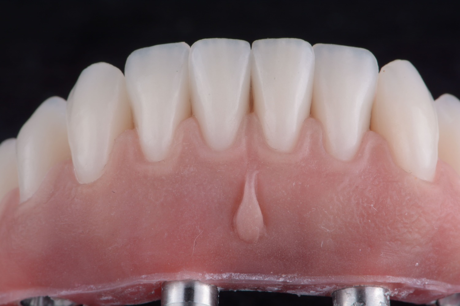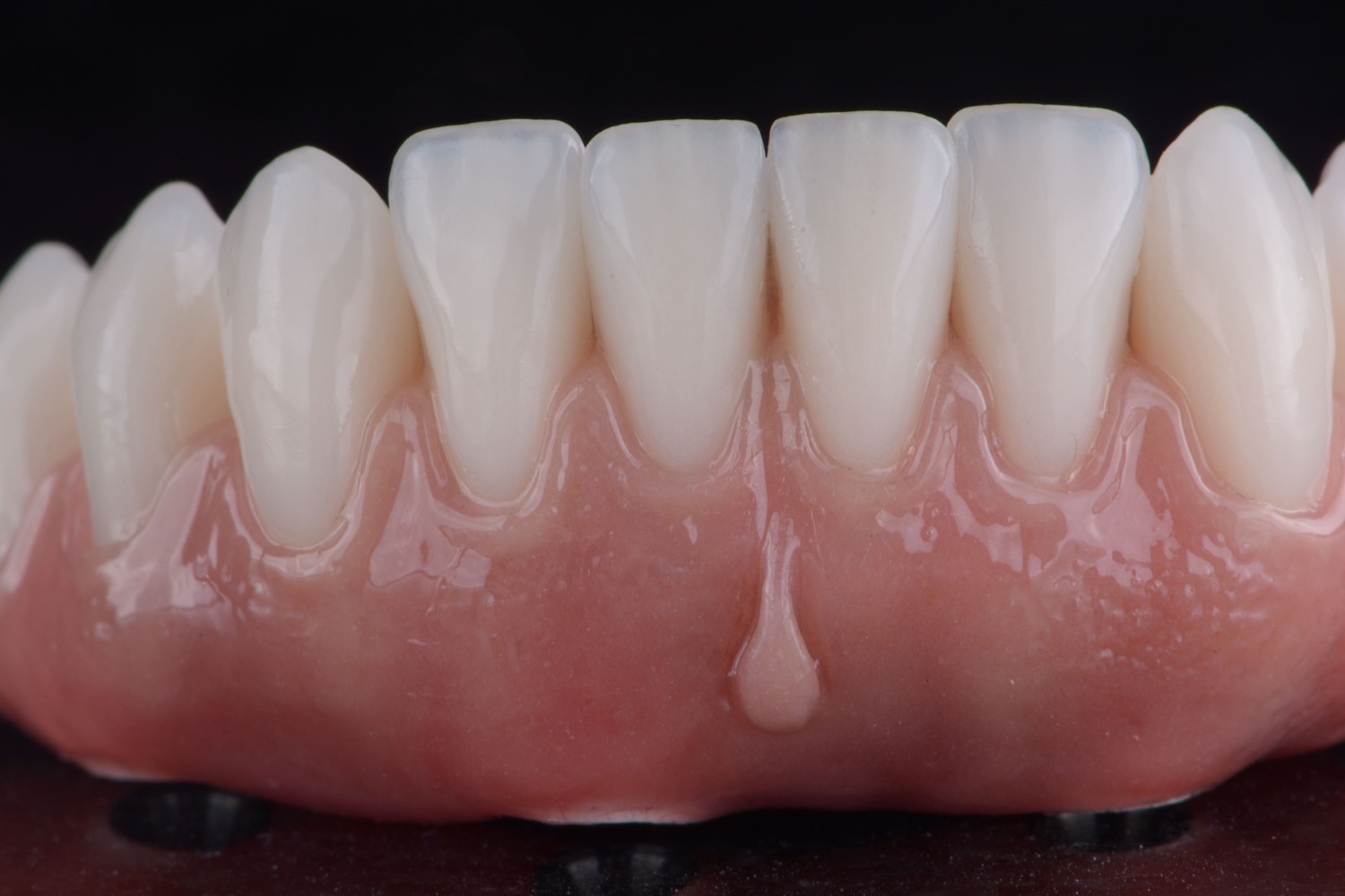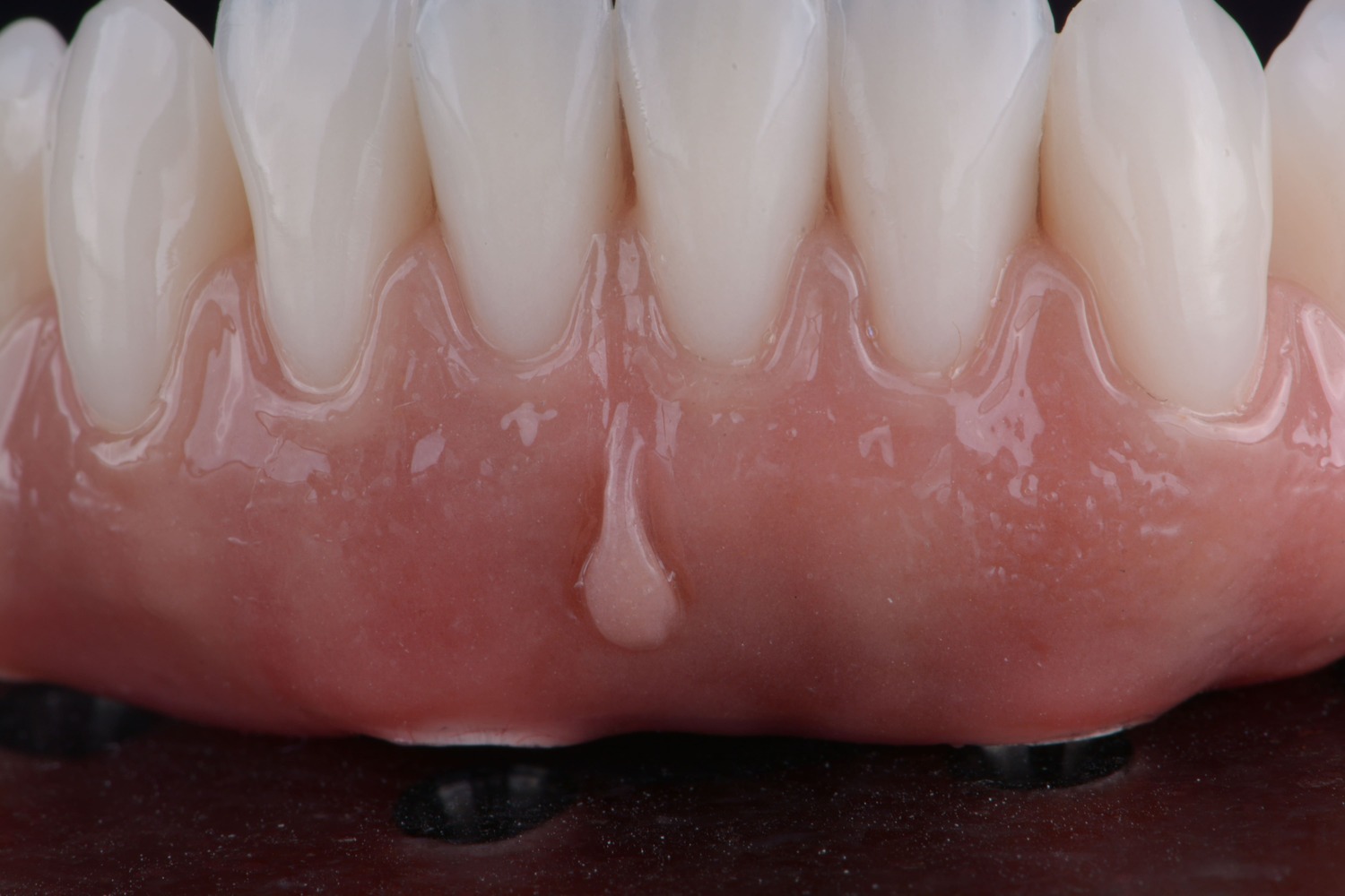 No caso das próteses totais e protocolos sobre implante, além de uma montagem personalizada dos dentes, é possível criar padrões de anatomia gengival que se reproduzam a gengiva natural e saudável. Para isso, a criação de uma de textura e aspecto de “casca de laranja” são fundamentais quando pensamos em estética.