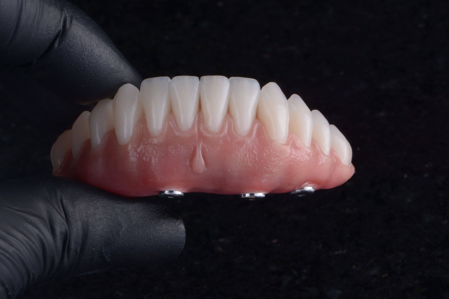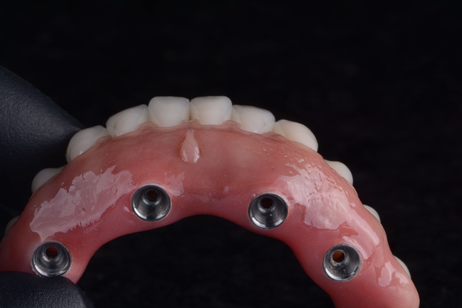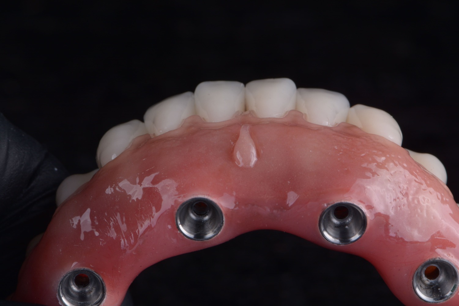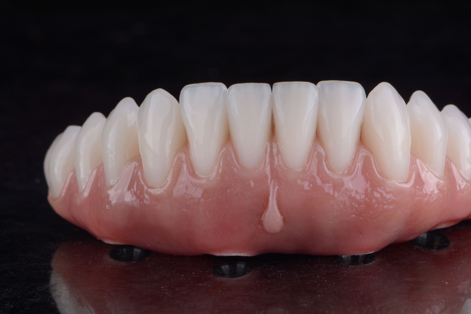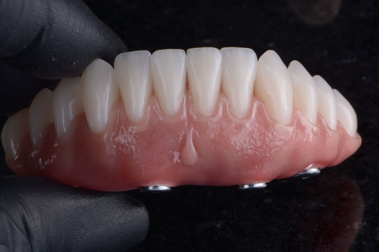 No caso das próteses totais e protocolos sobre implante, além de uma montagem personalizada dos dentes, é possível criar padrões de anatomia gengival que se reproduzam a gengiva natural e saudável. Para isso, a criação de uma de textura e aspecto de “casca de laranja” são fundamentais quando pensamos em estética.