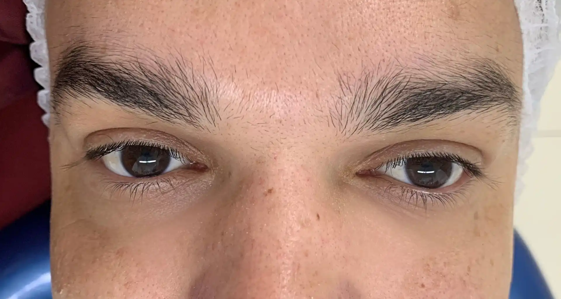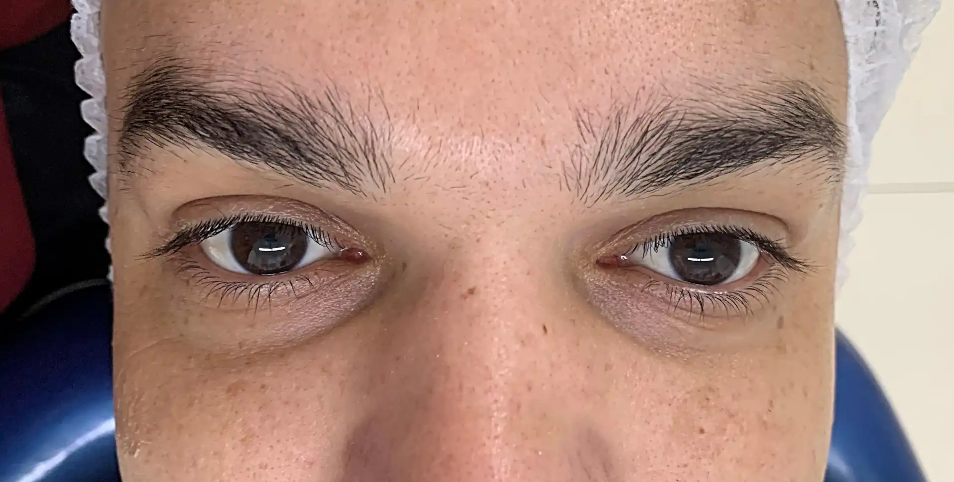 Paciente, gênero masculino, 35 anos, chegou ao consultório com queixa de olhar cansado mesmo após uma noite regular de sono e uso de skincare próprio para área dos olhos há um ano sem resultados positivos.