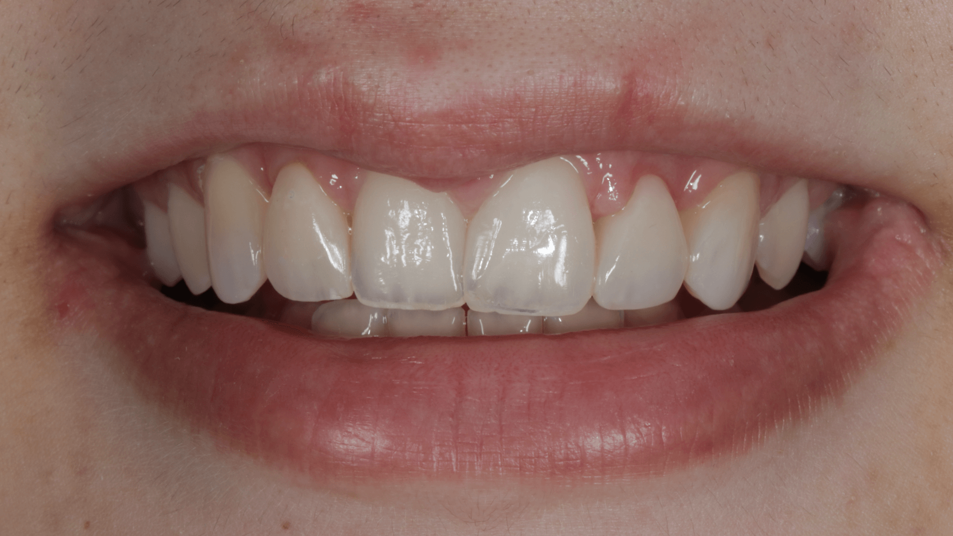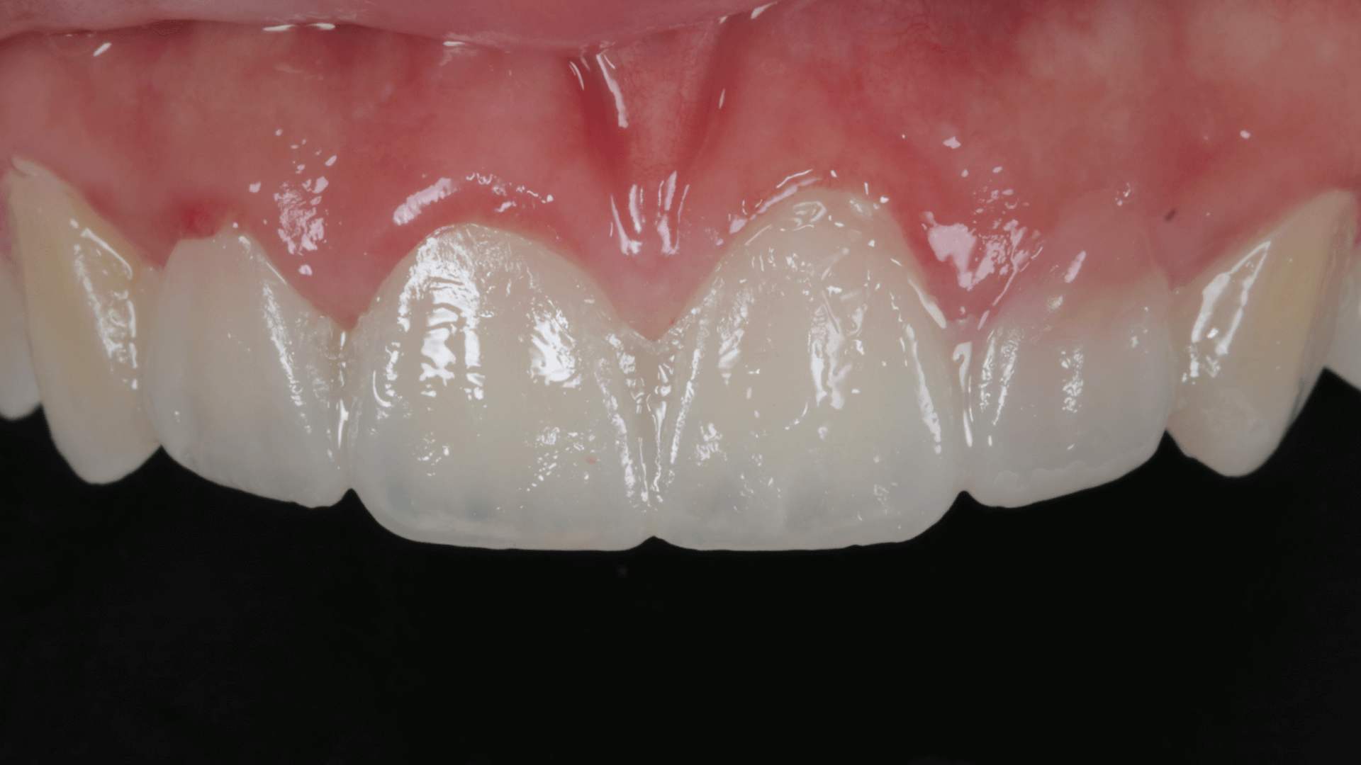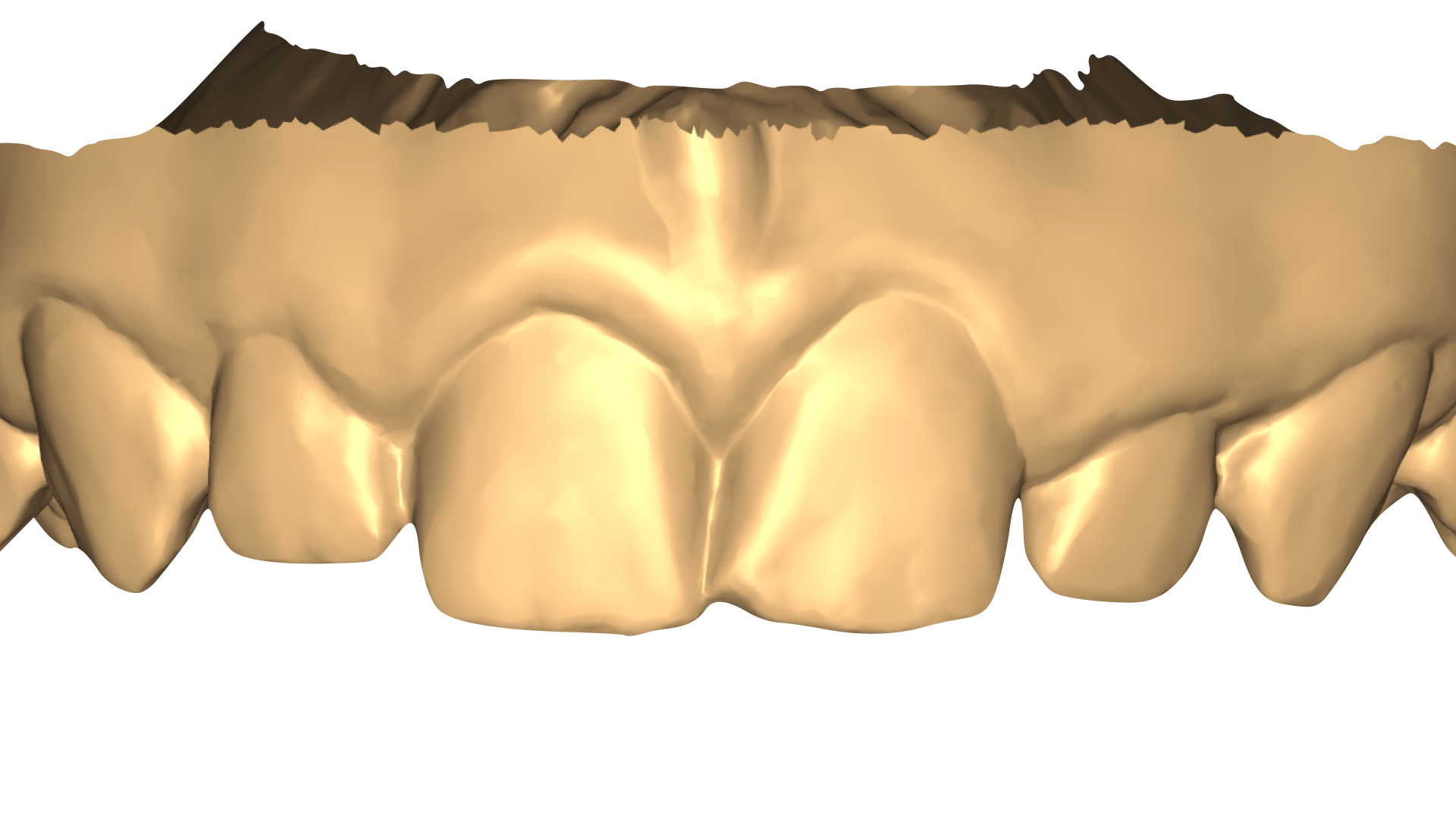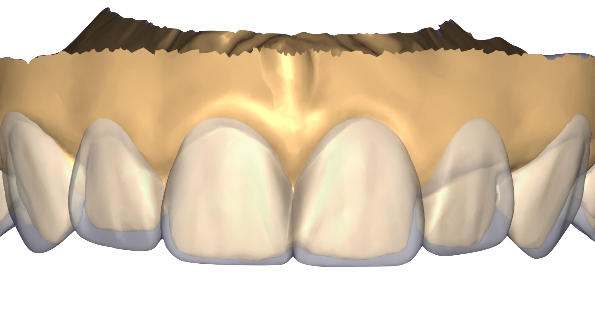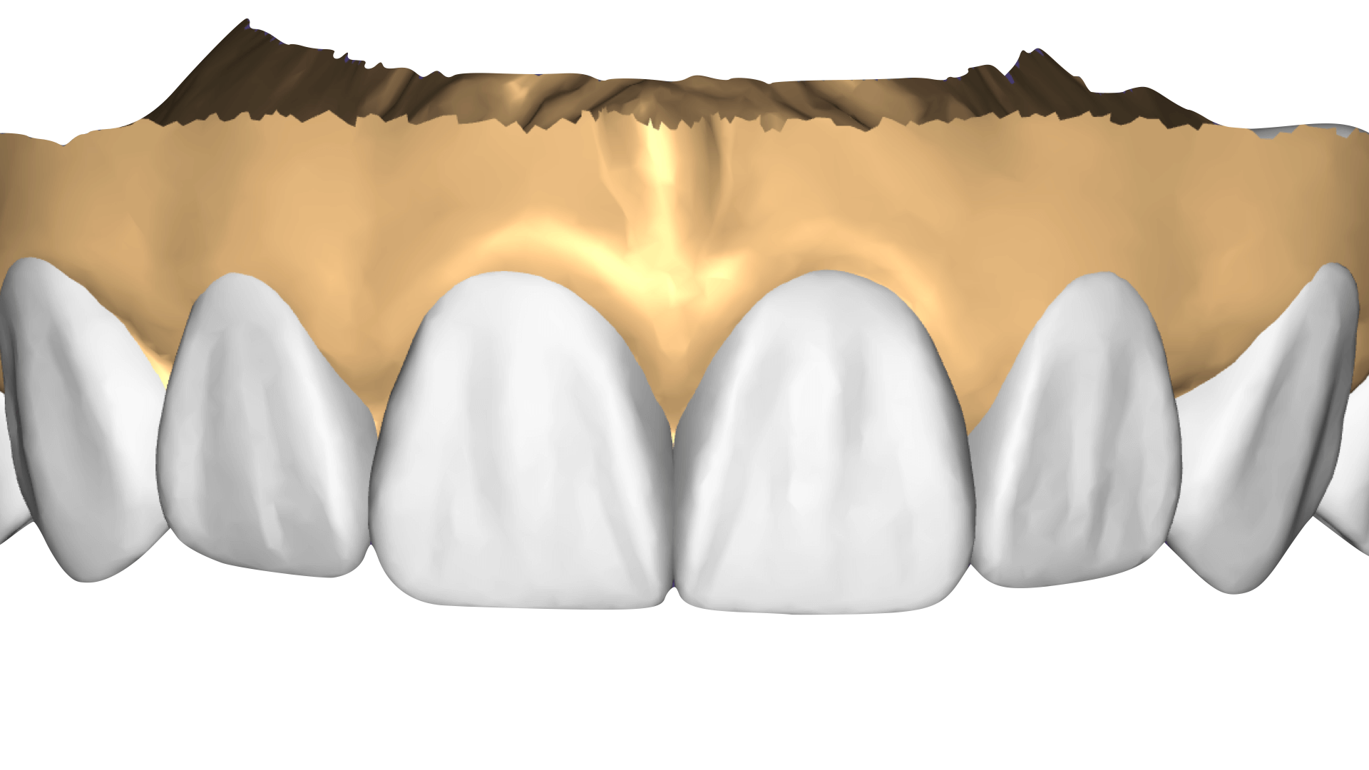 Como método auxiliar de planejamento, foi utilizado escaneamento intra oral e desenho digital das futuras restaurações. Através de um modelo impresso simulando o resultado final, foi possível realizar um mock up que serviu de guia para a cirurgia periodontal e com a confecção da muralha palatina pode-se executar as restaurações com maior fidelidade ao planejamento.