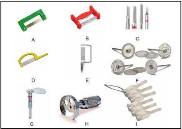 Primeiro, é preciso entender que são várias as formas e os instrumentos existentes para realizar os desgastes interproximais (Figura 1).