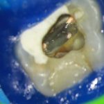 Nota-se que o tratamento foi conservador, com pouco desgaste de dentina pericervical, dando mais longevidade e manutenção da integridade da estrutura dental.
