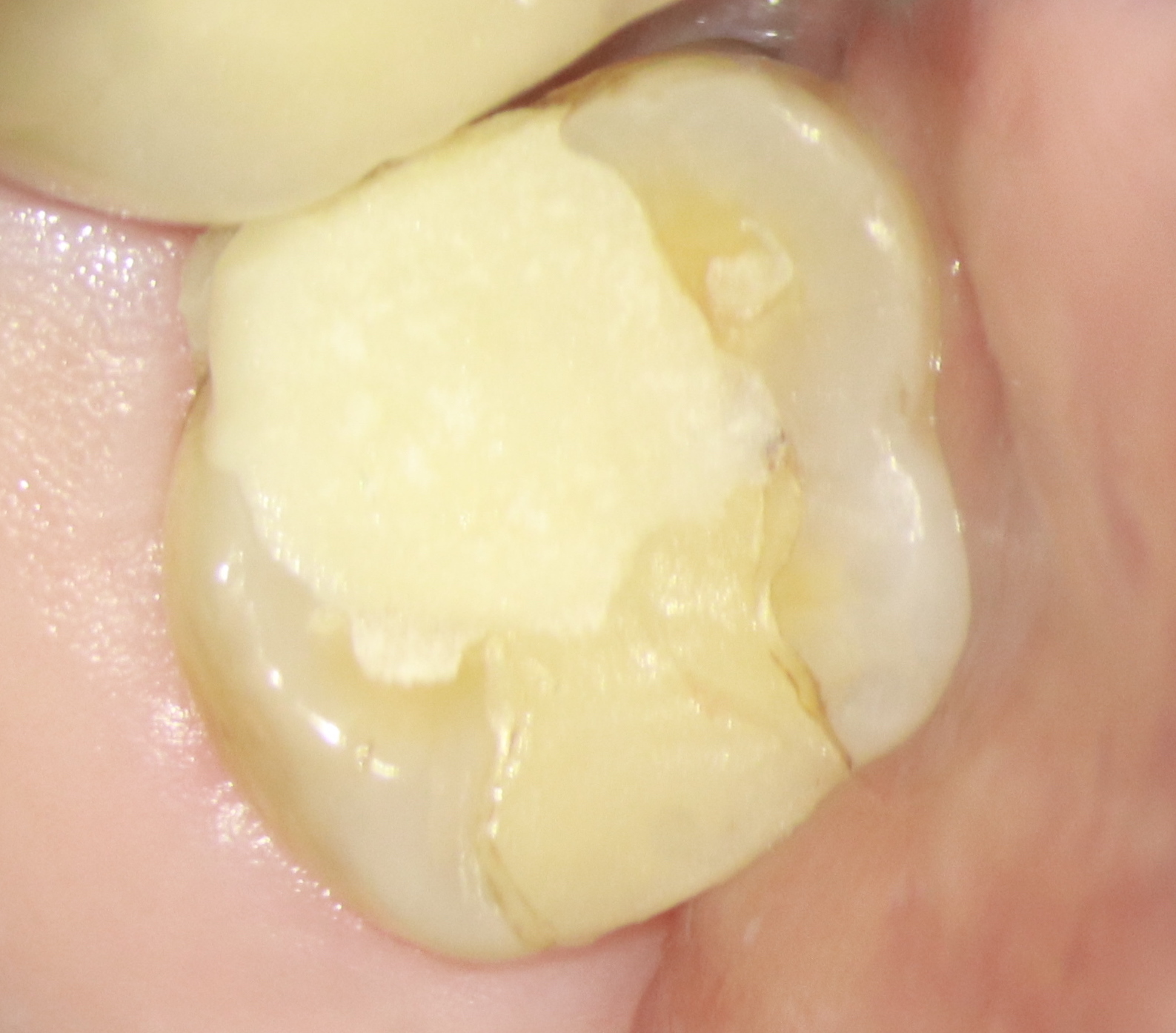 Nota-se que o tratamento foi conservador, com pouco desgaste de dentina pericervical, dando mais longevidade e manutenção da integridade da estrutura dental.