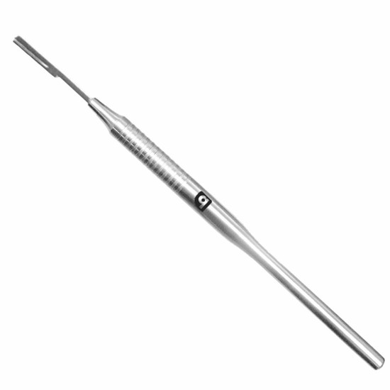 As espátulas Golgran são produzidas com cabo maciço de 5,5 mm e formato octogonal. A vantagem é que, com esse design, os instrumentos dificilmente rolam pela bancada.
