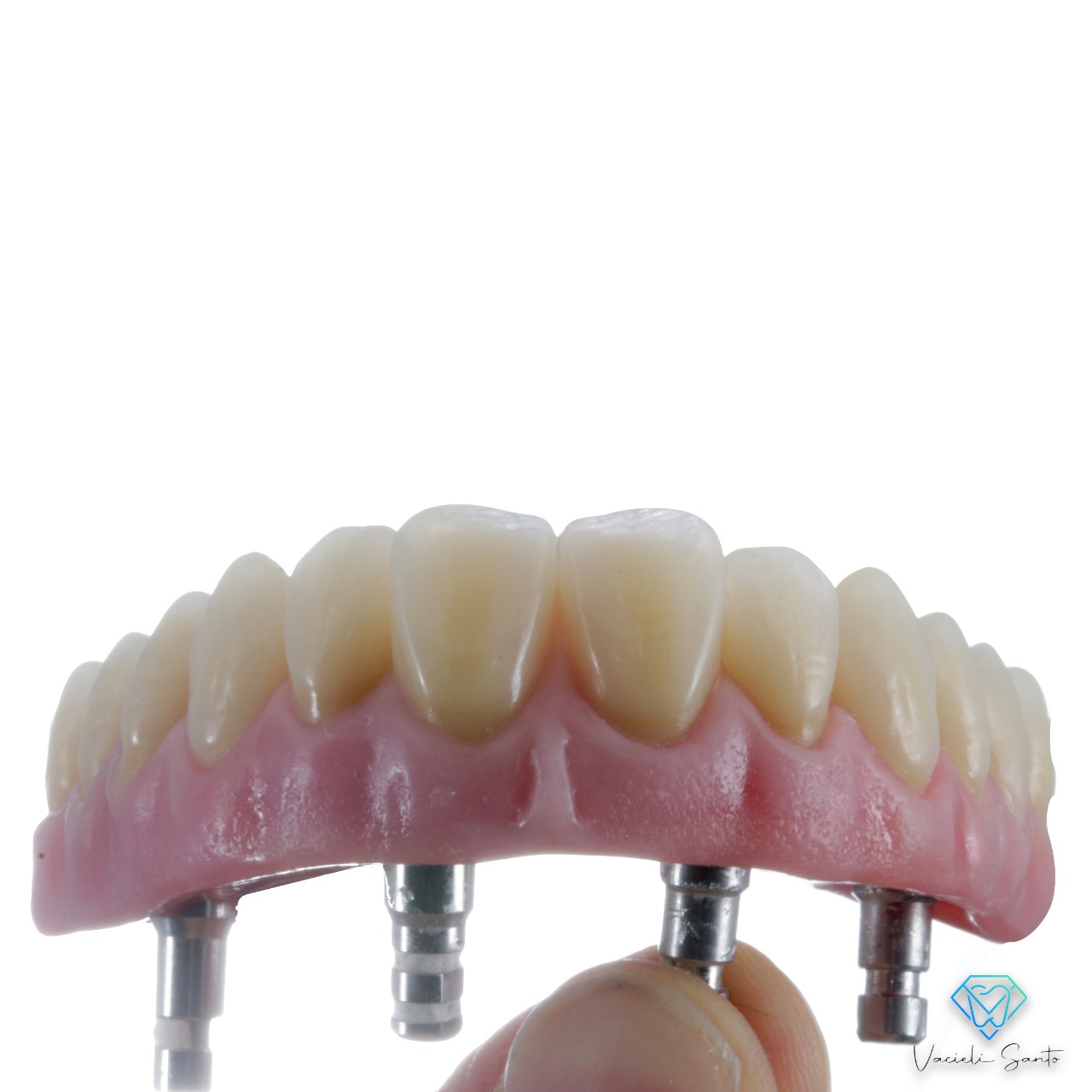 A barra metálica precisa ser opacificada, para evitarmos o sombreamento do metal sob a resina, e parafusada aos análogos que estão na base, os parafusos precisam ser protegidos por silicone. Segundo CASTRO e GOMES (2015), na acrilização deve-se sempre ter o cuidado de seguir as orientações do fabricante da resina acrílica escolhida, normalmente são 3 partes de polímero para 1 de monômero, também podem ser aplicadas, técnicas diversificadas de acrilização, a mais conhecida é o sistema STG (Sistema Tomas Gomes), onde caracteriza-se a gengiva na parte vestibular, seguindo orientação do manual e conforme a cor escolhida, baseando-se na cor da gengiva natural do paciente.
