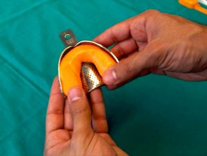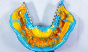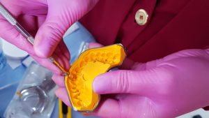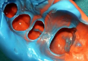 - Primeiro, molde o paciente com o material pesado e, em seguida, faça os alívios no molde com bisturi ou fresa.