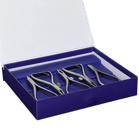 Existem diversos tipos de alicates ortodônticos, cada um projetado para uma determinada função. Alguns são mais delicados, compatíveis com fios leves e iniciais, enquanto outros são robustos, indicados para corte e dobra de fios ortodônticos mais pesados.